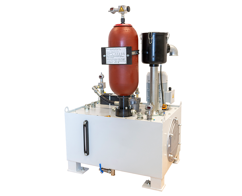 Bei Rundtischen, vertikalen Drehmaschinen und Spindeln besitzen die Hydraulik-Aggregate einen größeren Tank. Ab einem Tankvolumen größer 70l greifen wir aufgrund des Unterdrucks auf Stahltanks zurück.