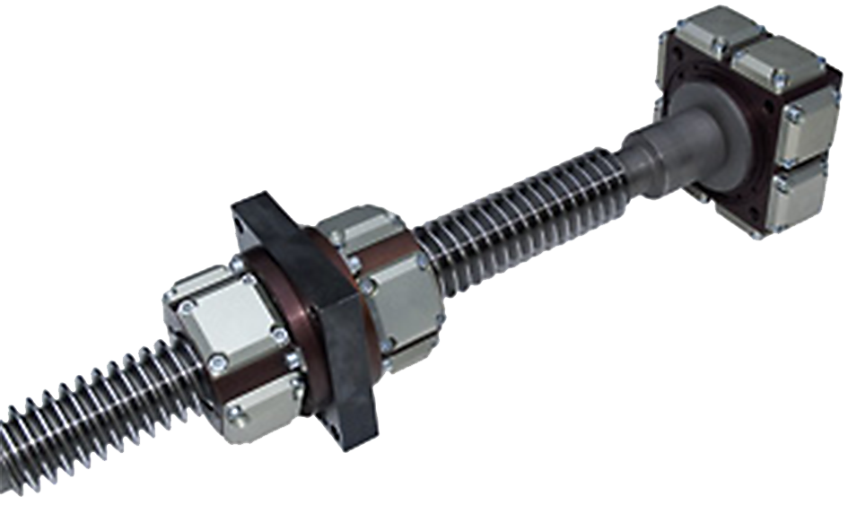 führt. Diese Gewindetriebe können statischen und dynamischen Belastungen von ca. 20 kN standhalten, bei größeren Modellen sogar bis zu 1.000 kN.