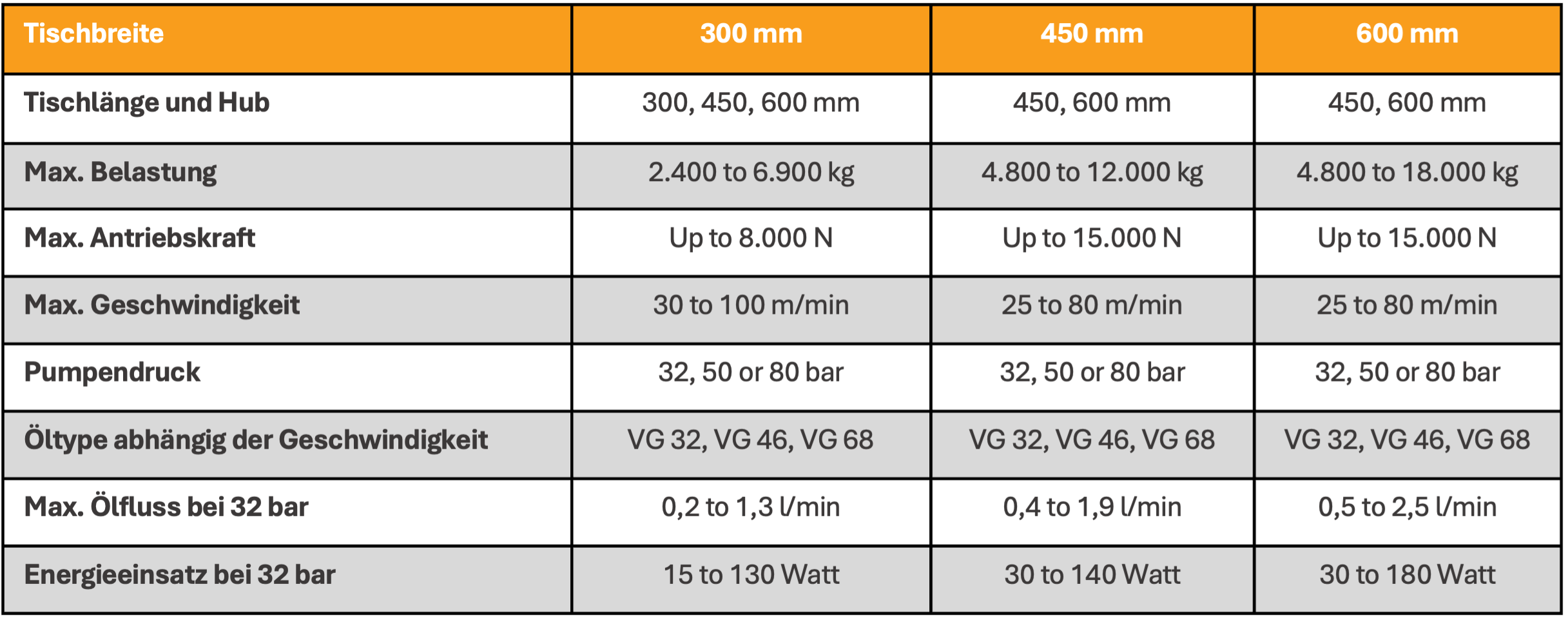 Umfang einer kompletten hydrostatischen Linearachse