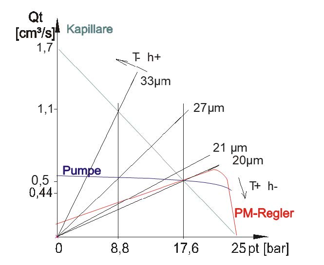 • Mit dem PM-Regler können – ohne Reserve – Taschendrücke bis ca. 90% des Pumpendrucks ausgenutzt werden